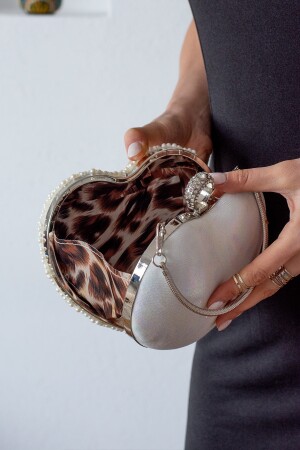 Kadın Yuvarlak Gümüş Taşlı Bilezik Aksesuarlı Abiye Clutch Portföy Çantası