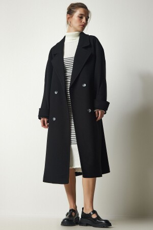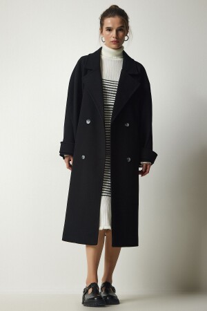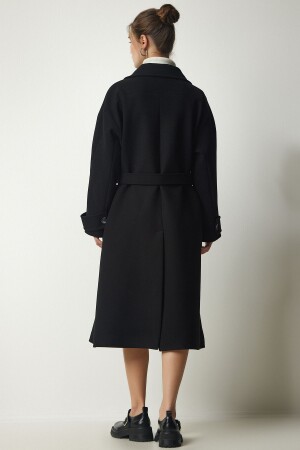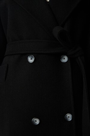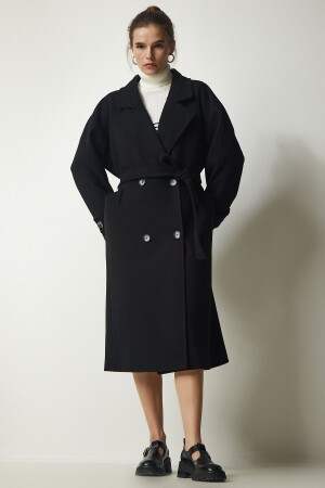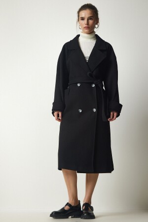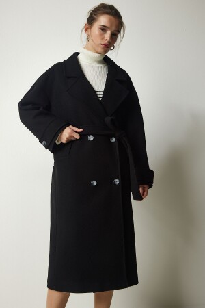 ملابس نسائية من نوع MNZ ذات الرحم المزدوج الأسود مع قلادة مقبضة على الحزام من حجم كبير معطف كاشمير TO00115
