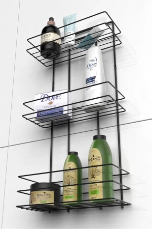ملصق من نوع MNZ لا يحصى بالصدأ 3 طبقات حمام حمام غرف المسبح منظمة شامبو حامل غرف المسبح أحجام سوداء الارتفاع: 54 سم عرض