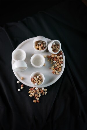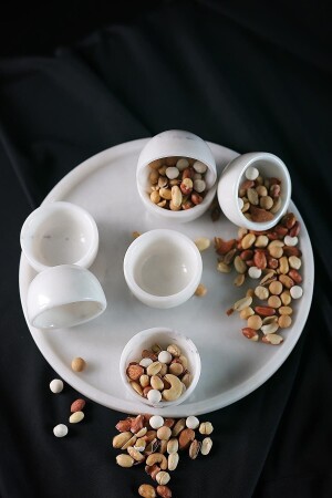 ملعقة من الرخام الطبيعي باللون الأبيض المزخرف MNZ، وعلبة الخدمة و 6 أكواب العشاء