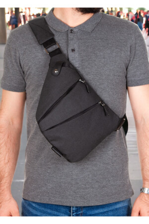 Unisex Siyah Keten Kumaş Telefon Bölmeli Çapraz Askılı Omuz Ve Bel Çantası Günlük Çanta