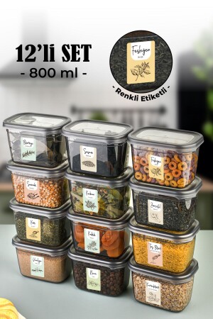 ملون MNZ مع علامة 12-قطعة Peggy مستطيل وعاء العقاقير مجموعة 800 مل انتراكيت VBRNKLPGGY12LI800