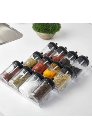 12'li Kapağı Kendinden Kaşıklı Ve Etiketli Baharatlık Seti 300 ml Gold Etiketli Cam Baharat Takımı