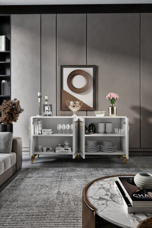 MNZ-3-Door Katya Console ذهب أبيض KNS8039