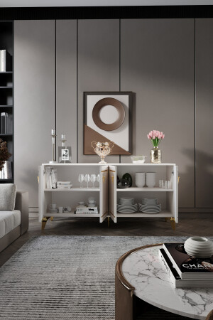 MNZ-3-Door Katya Console ذهب أبيض KNS8039