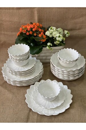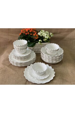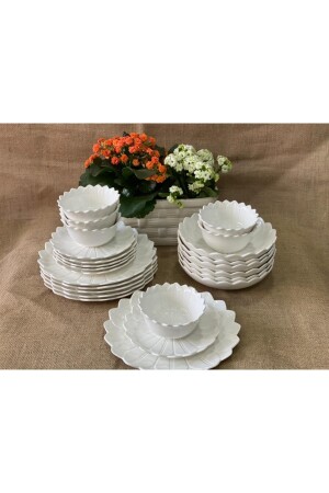 مجموعة عشاء من 24 قطعة من طراز MNZ لـ 6 أشخاص. إنها منتج من الفورسلين من الدرجة الأولى. يمكنك الجمع بينها مع طبقات الخدمة و مجموعات عش