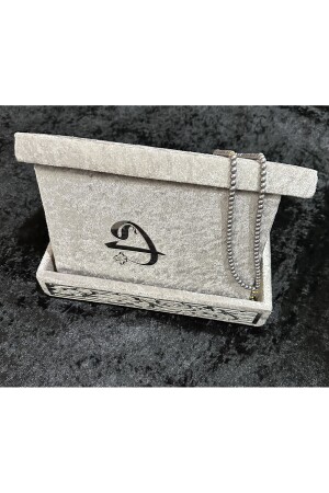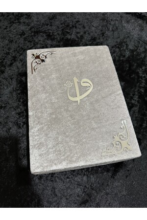 م.ن.ز-الخوف مغطى متوسط الحجم القرآن المقدس 17-24 الحجم اللون الرمادي مع الديكور الفضي للكرمة الصلاة الكوراني و حامل اسم