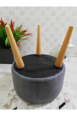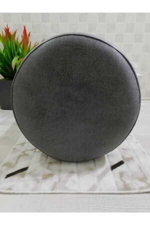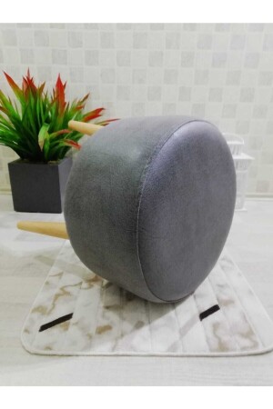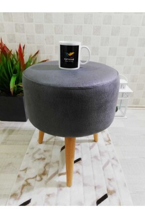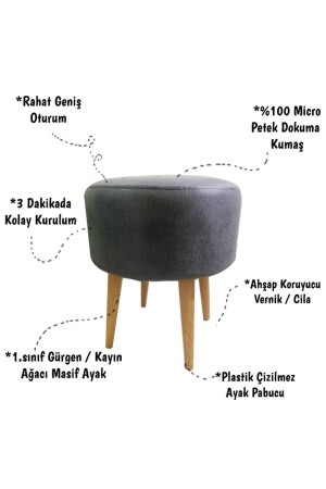 Gürgen Siyah Ahşap Ayak Antrasit Keten Kumaş Oval Puf Bench