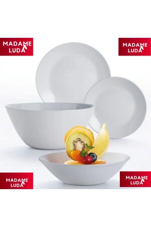 منتج من علامة لومينارك. 6 قطع من 25 سم. أطباق خدمة في اللون الأبيض. 6 قطع من 20 سم. طبق العشاء. 6 قطع من 18 سم. طبق الكعك