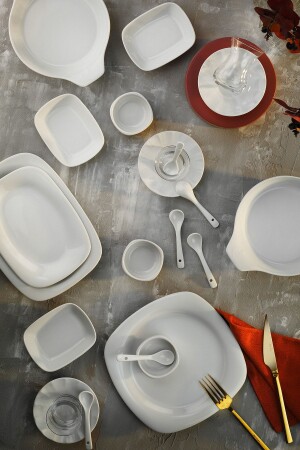 64 Parça 12 Kişilik Platin Modern Krem Kahvaltı Takımı