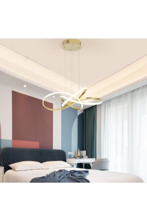 حجم المنتج: 55 سم قطر قابل للتعديل حجم 84 وات طاقة LED 4200K ضوء النهار لون: ذهبية صفراء جسم معدني مستورد