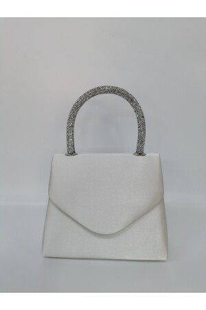 Kadın Yuvarlak Gümüş Taşlı Bilezik Aksesuarlı Abiye Clutch Portföy Çantası