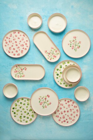 64 Parça 12 Kişilik Platin Modern Krem Kahvaltı Takımı