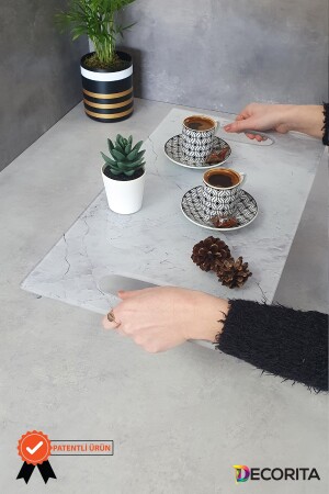 Paslanmaz Çelik Kare 6lı Aksesuarsız Çay Kahve Sunum Tepsisi