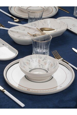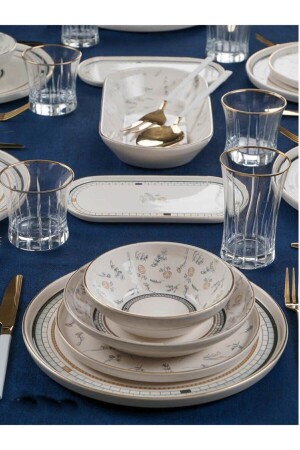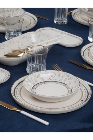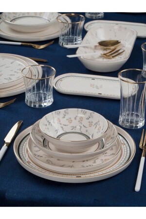 كأس صوفيا من طراز MNZ-Acar 27 قطعة طعام عشاء أبيض ذو نمط ذهبية مجموعة لـ 6 أشخاص 0060 محتوى المنتج 6 قطع من كأس الح