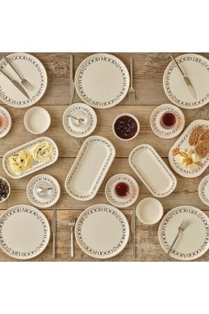 64 Parça 12 Kişilik Platin Modern Krem Kahvaltı Takımı