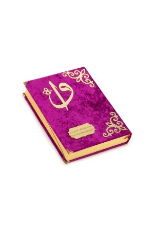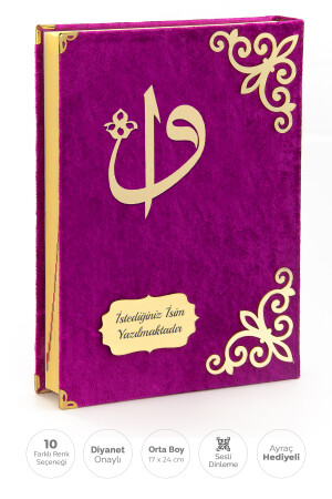 Hediyelik Kadife Kaplı Isme Özel Pleksi Desenli Arapça Orta Boy Kuranı Kerim Fuşya