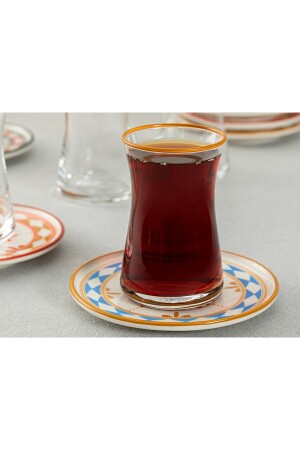 6'lı Keyfi Ala Borosilikat Cam Kulplu Çay Bardağı 220ml Bardak