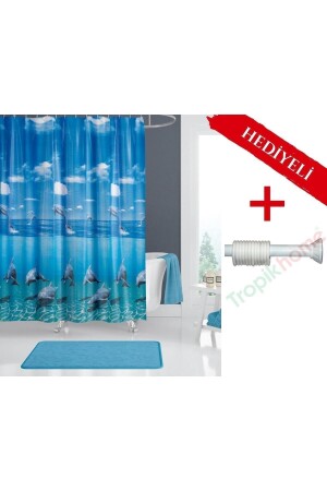 منز-أزرق نمط الدلافين الحمام الستارة - الأزرق لون الحمام الستارة C-ring Polyester الحمام الستارة مع هانجر هدية
