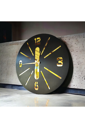 3 Boyutlu Piyano Lüxs Model Aynalı Duvar Saati Türk Rakamlı Gold