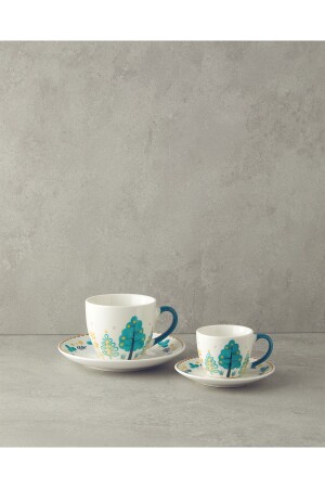 (منز-الحب الغابة) العظام الجديدة الصين 4 قطع كوب قهوة مجموعة لشخصين خضراء