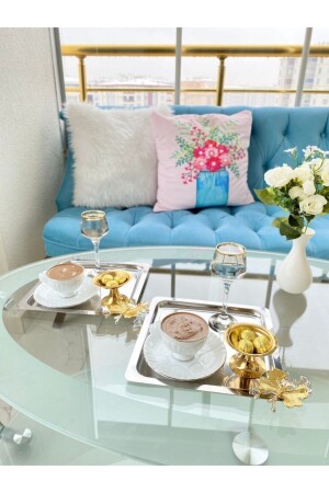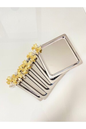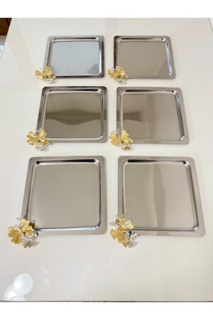 Paslanmaz Çelik Kare 6lı Aksesuarsız Çay Kahve Sunum Tepsisi