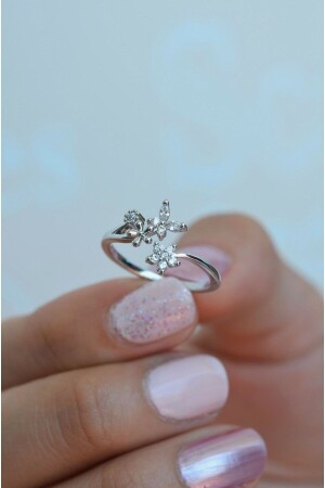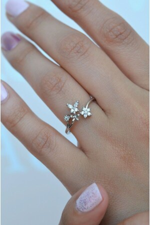 منز-الفضة لون طائر زهرة الخاتم رقيقة الخاتم قابلة للتعديل