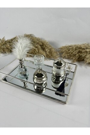 Paslanmaz Çelik Kare 6lı Aksesuarsız Çay Kahve Sunum Tepsisi