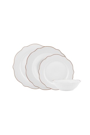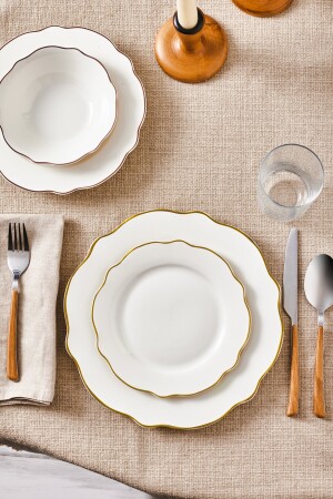 MNZ-Karaca Mandal Gold Line 24 Piece Dinner Set للست أشخاص مجموعة محتويات 6 لوحات خدمة 27 سم، 6 لوحات طاقة 22 سم، 6 لوحات كعك 19 سم