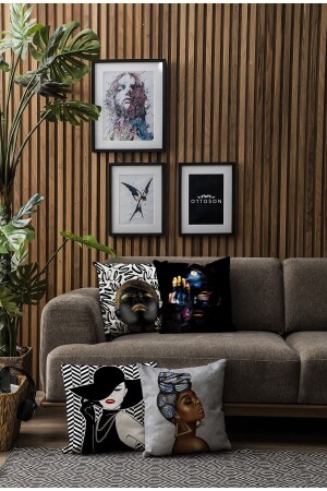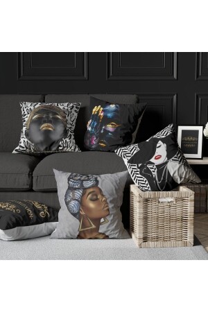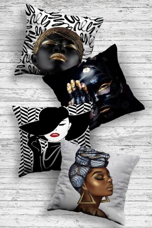 Afrika Temalı Kırmızı Sarı Renklerde Hediyelik 4'lü Dijital Baskılı Koltuk Kırlent Kılıfları