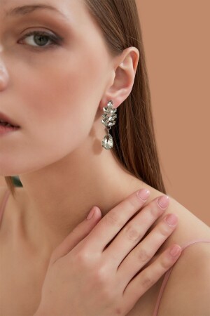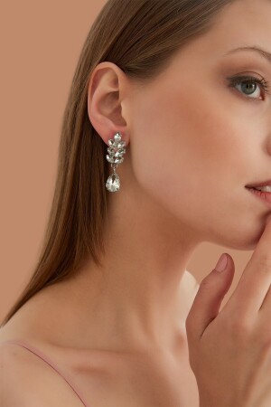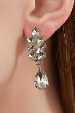 كلارا البيضاء من ورقة الماس كريستال الحجر النموذج الفضي معلق يومي فستان العرس الأقراط الزفافة