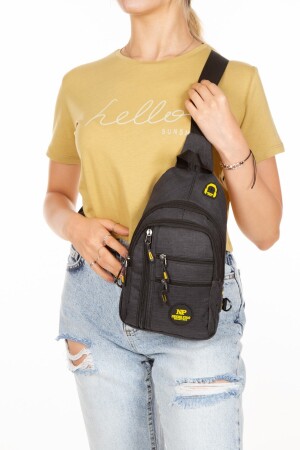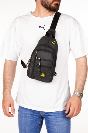 Unisex Siyah Keten Kumaş Telefon Bölmeli Çapraz Askılı Omuz Ve Bel Çantası Günlük Çanta