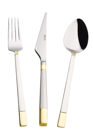MNZ-Emsan Elegance Duru Gold 84 Piece فخمة مقبضة قناع قناع سكين مجموعة ل 12 شخص مجموعة المحتوى: 12 قناع عشاء 3.0 مم،