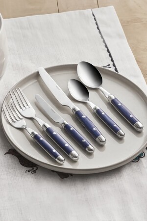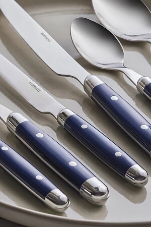 م.ن.ز-كاراكا ألينا 36 قطعة سكين ملعقة شوكة مجموعة 6 أشخاص مجموعة زرقاء تضم 6 سكينات عشاء - 22.5 سم 6 ملعقة