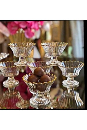 MNZ- مجموعة من 6 أساسات ذهبية مفصلة مقعد من السكر الكؤوس العرض خفيفة الوجبات الزهرية الأوعية الذهبية تفاصيل الذهب لامعة و