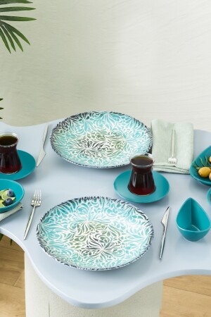 Çiğdem Blue Model 12 Kişilik 21 Parça Kahvaltı Takımı Kahvaltı Seti[ Mavi 12]