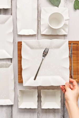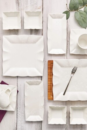 64 Parça 12 Kişilik Platin Modern Krem Kahvaltı Takımı