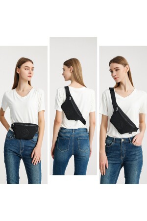 Unisex Siyah Keten Kumaş Telefon Bölmeli Çapraz Askılı Omuz Ve Bel Çantası Günlük Çanta
