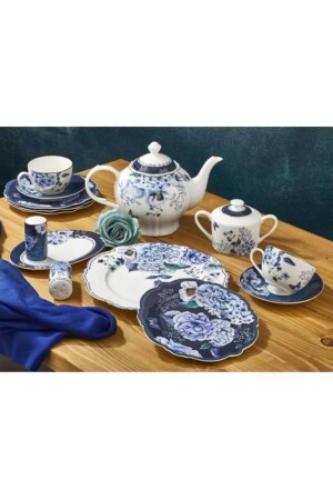 Çiğdem Blue Model 12 Kişilik 21 Parça Kahvaltı Takımı Kahvaltı Seti[ Mavi 12]