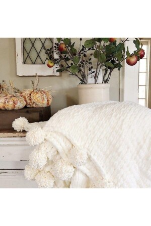 Krem Çift Kişilik Fransız Güpürlü Çeyizlik Battaniye Takımı