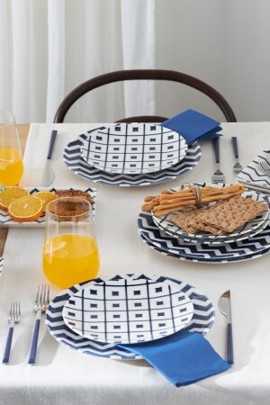 Çiğdem Blue Model 12 Kişilik 21 Parça Kahvaltı Takımı Kahvaltı Seti[ Mavi 12]