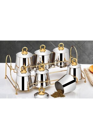 12'li Kapağı Kendinden Kaşıklı Ve Etiketli Baharatlık Seti 300 ml Gold Etiketli Cam Baharat Takımı