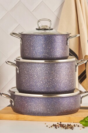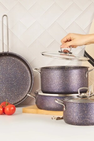منز-بيغرانيت الفولاذ زائد 7 قطع طباخات مجموعة الأرجواني 153. 03. 08. 1597