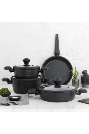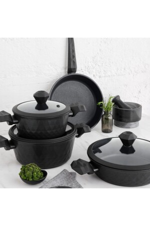 مجموعة طباخات من طراز منىز-كاراكا بيو دياموند 7 قطع مجموعة شاملة 20 سم صلصة 24 سم بركة 26 سم كارنييارك كاسيرول 26 سم پان