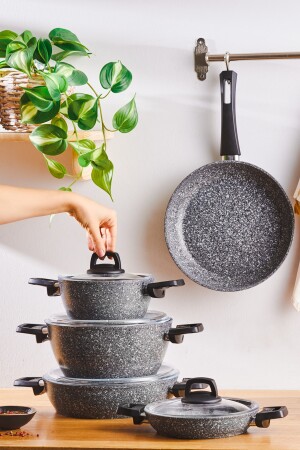 م.ن.ز-بيو غرانيت جري ستون 9 قطع طباخات مجموعة 153. 03. 08. 3533
