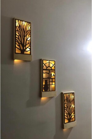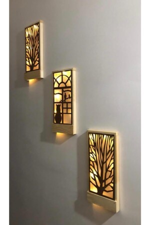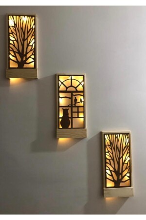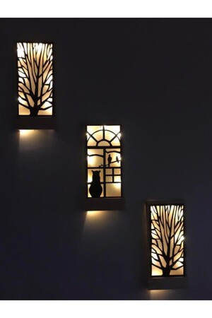 منز-جني LED 3pcs بطاريات تضمنت أكابا خشب صلب لوحة المنزل هدية مدخل الممر مصباح الليل 36x18 الحائط زينة القط المتوسط