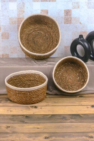 م.ن.ز-جورجيا - ديكوراتي طبيعي خيط اليدين خيط اليدين دائرة 3 قطع سلة، حاملة الفاكهة، طبق الصابون، حاملة