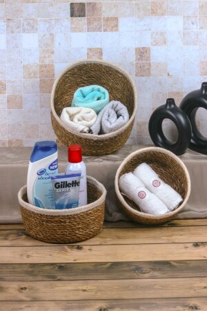 م.ن.ز-جورجيا - ديكوراتية الطبيعية خياطة اليد خياطة 3 قطع دائرة السلة، حامل المناشف، كريم تنظيم الحمام AGGDDEÖ