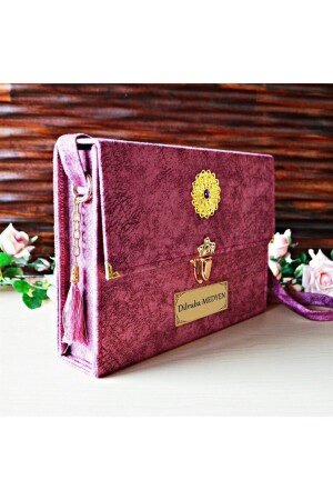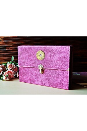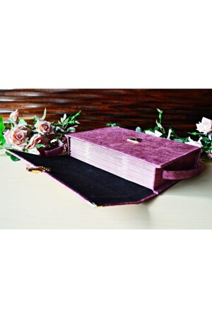 Hediyelik Kadife Kaplı Isme Özel Pleksi Desenli Arapça Orta Boy Kuranı Kerim Fuşya
