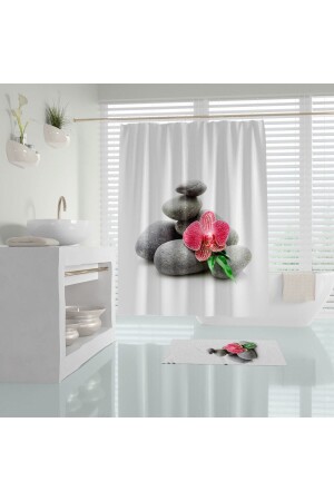 Çiçekli Banyo Perdesi Askı Hediyeli 180x200cm Tek Kanat Duş Perdesi- Renkli Banyo Duş Perdesi